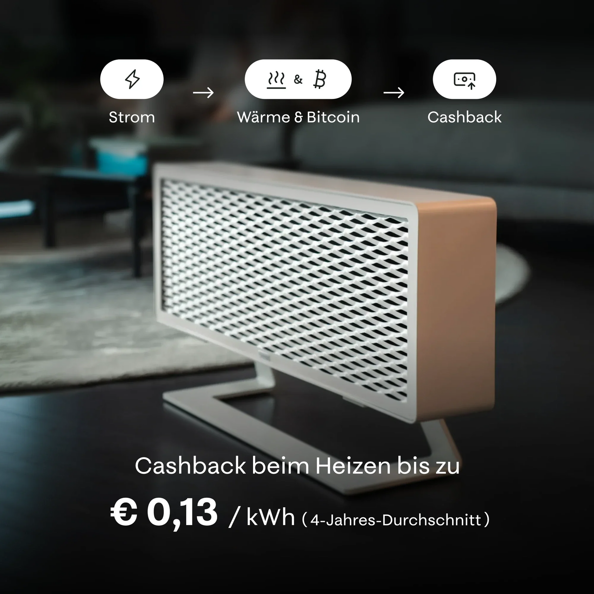 Sichere Dir jetzt deine elegante, wandmontierte Heizung, die dein Haus wärmt und Bitcoin schürft. Den maximalen Effekt erzielt man durch die kombinierte Nutzung mit einer PV-Anlage. Der Premium Standfuß und Wandhalterung sind separat erhältlich.